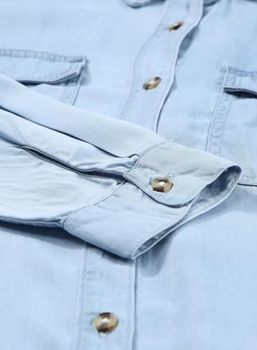 Astylish Women Button Down Denim Shirts Casual Long Sleeve V Neck Chambray Blouse Top 5