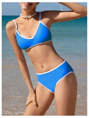 Girl's 2 Piece Swimsuit Sets Spaghetti Strap Two Tone Bathing Suit Cute Vacation V Neck Swimwear 2