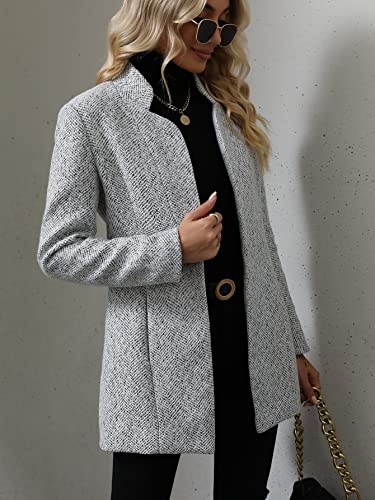 • Solid color, long sleeve, stand collar, notch neck, slim fit, open front, casual herringbone coat for women
