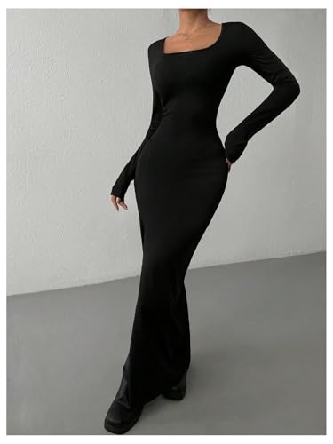 Floerns Women's Long Sleeve Pencil Dress Scoop Neck Slit Hem Bodycon Long Dress 6