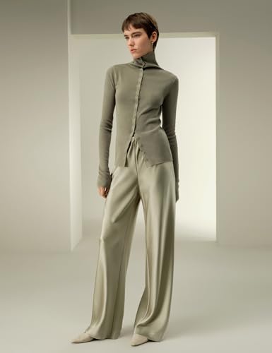 • Luxurious Double-Sided Silk Satin Work Pants for Women​​: These womens business casual trousers are crafted from premium 100% mulberry silk satin with a reversible design, offering a lustrous finish on both sides. The temperature-regulating fabric provides year-round comfort while maintaining a luxurious drape ideal for office clothes. Ideal for high waisted outfits, these pull on trousers combine elegance with practicality, featuring a smooth, breathable texture that ladies will adore.
