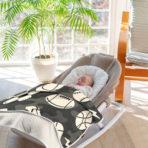 Custom Cartoon Baseball Balls Camouflage Muslin Swaddle Blanket Cozy Customise pet Baby Blanket with Name for Nursery Stroller Crib 30x40in cobijas para personalizadas