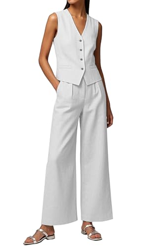 Mi Bo Tong Women's 2 Piece Outfits Linen Vest and Wide Leg Pants Casual Sleeveless Sets Summer Outfits 2