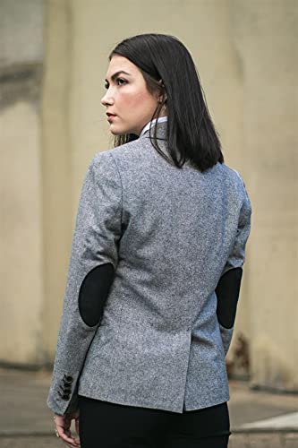 Womens Tweed Grey Black Blazer Jacket Waistcoat Elow Patch Classic Peaky 1920s 6