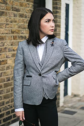 Womens Tweed Grey Black Blazer Jacket Waistcoat Elow Patch Classic Peaky 1920s 5