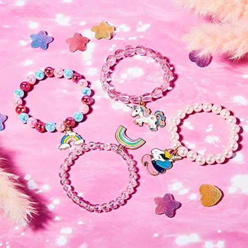 Hicarer 9 Pcs Unicorn Girls Bracelets for Girls Rainbow Bracelets Princess Colorful Cute Beaded Jewelry for Friendship Gift Goodie Bag Stuffers Fillers Birthday Party Favors(Bead Style)