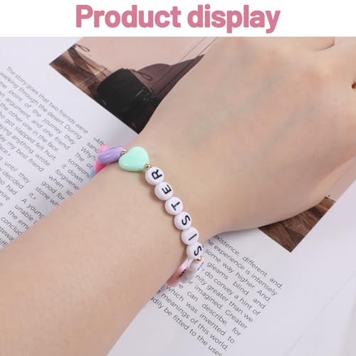 Material: Copper + AcrylicMetal type: Copper + acrylicClasp type: Buckle ClaspGem type: Copper + acrylic【Sister Bracelet】This big sister bracelet is suitable as a cute gift for big sisters. Jewelry bracelets are a great way to express love and care. The letter beads and rainbow heart-shaped beads on the bracelet for big sisters symbolize love and warmth. The bracelet can make the person who receives the gift feel full of heart.【High-quality materials】This bracelet as a big sister gift is made of high-quality acrylic beads. The color of the Christmas bracelet is bright and not easy to fade. The big sister little sister bracelet can be used for a long time.【Suitable size】The size of the sister bracelet is 7.4 inches (18.8 cm). The elastic rope of the bracelet can make the bracelet fit most people's wrists. The bracelet as a matching sister gift is easy to put on and take off. The big sister little sister matching outfits bracelet is plush for most big sisters to wear.【Suitable size】The size of the sister bracelet is 7.4 inches (18.8 cm). The elastic rope of the bracelet can make the bracelet fit most people's wrists. The bracelet as a matching sister gift is easy to put on and take off. The big sister little sister matching outfits bracelet is comfortable for most big sisters to wear.【Great Gift】These sister bracelets for women are great gifts for sisters, future sisters, new sisters, granddaughters, daughters, nieces, friends on Christmas, birthdays, anniversaries, graduations, engagements or any special parties. Perfect for everyday use. finest materials and excellent craftsmanship ensure long-lasting durability.