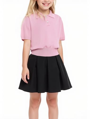 Girls Short Sleeve Polo Shirt V Neck Button Down Shirts Summer Knit School Uniform Crop Tops 6