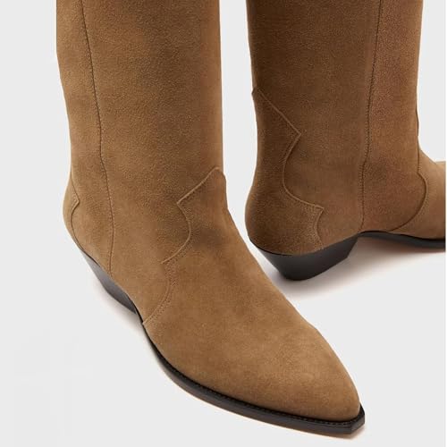 Why Choose Yishaweiqi Camel Suede Knee High Boots for Women Snip Toe Chunky Heel Cowboy Cowgirl Boots Ladies Fall Wide Calf Tall Boots?