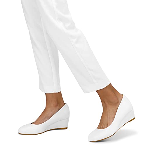 mysoft Women's Wedge Pumps Closed Toe Low Heel Dress Shoes White