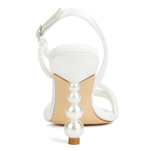 Pearl Heels Wedding Shoes for Bride Open Toe Bridal Shoes Strappy Heeled Sandals for Women 4