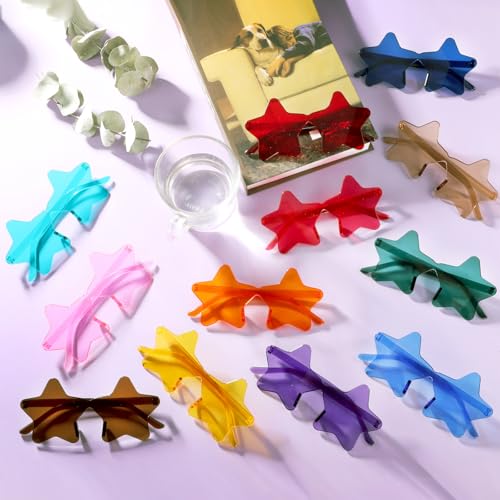 • Super Value Star Glasses Bulk: There are 48 pack star shaped sunglasses, Bright candy colors of rimless star shaped sunglasses bring good moods, let them become highly eye-catching in all kinds of parties and activities. Whether you're planning a coordinated group photo, or a themed party, enough quantity and colors to meet your needs for any occasion party.