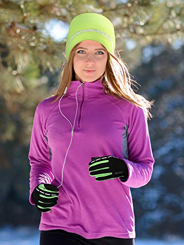 High Elasticity Reflective Knit Cap and Reflective Touch Screen Gloves, Cold-Proof and cozy Hat and Gloves Kit for Running Cycling Hiking Walking for Men Women (Bright Yellow)