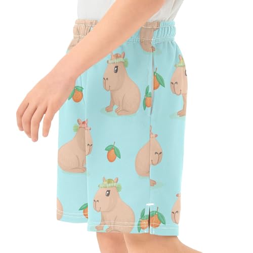Cute Capybaras Athletic Shorts with Zipper Pockets, Youth Boys Athletic Running Shorts for Summer