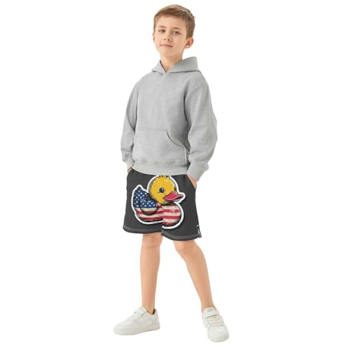 DOMIKING Flag Duck Grey Kids Shorts Pull-on Boys Shorts with Elastic Waist Casual Athletic Pants for Summer Outdoor Playwear 7