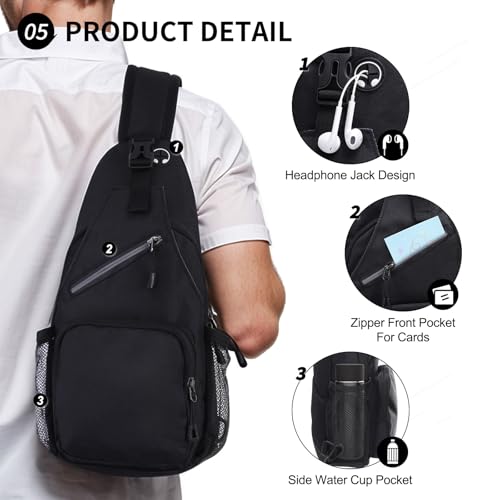 Small Sling Bag, Water Resistant 11 Inch Crossbody Chest Bags Oxford Daypack Backpack with Headphone Jack with Anti-theft Pocket for Men Women (Black) 3