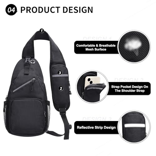 Small Sling Bag, Water Resistant 11 Inch Crossbody Chest Bags Oxford Daypack Backpack with Headphone Jack with Anti-theft Pocket for Men Women (Black) 1