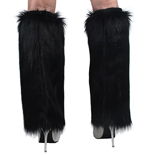 Womens Fluffy Faux Fur Leg Warmers Cozy Fuzzy Long Boot Cuffs Covers 4