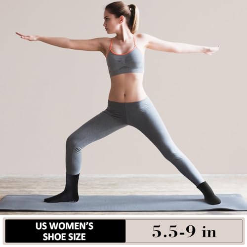 • MATERIAL: Crafted with a composition of 93%cotton 3.9%spandex 3.1% nylon, our yoga socks with grips are interwoven with a small amount of spandex to ensure an excellent fit for women's shoe sizes 5.5-9. silky, durable, and breathable, perfect stitching bring you cozy feeling