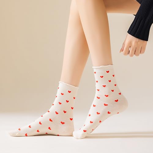 Women’s Cute Heart Pattern Crew Socks – 3 Pairs Colorful Novelty Gift Set – smooth Cotton Cozy Socks for Casual Wear