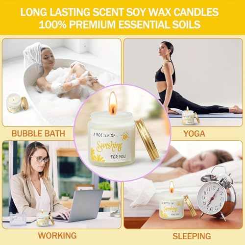 COMPLETE GIFT SET: Thoughtfully curated sunshine-themed care package including insulated tumbler, cozy socks, scented candle, compact mirror, keychain, and inspirational plaqueCHEERFUL DESIGN: charming sunflower motif throughout the collection with yellow and white color scheme, perfect for spreading joy and positivityPRACTICAL ITEMS: Includes a 12oz stainless steel tumbler with lid, soft plush socks with heart detail, decorative scented candle in glass jar with lidTHOUGHTFUL ACCESSORIES: Features a glitter compact mirror, sunflower keychain with heartfelt message, and standing decorative plaque with uplifting quotesREADY TO GIFT: Arrives beautifully presented with 'Hello Sunshine' greeting card and decorative paper bouquet, perfect for immediate gifting Perfect for everyday use. finest materials and excellent craftsmanship ensure long-lasting durability.