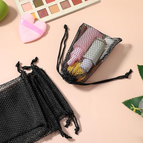 8 Pcs Mesh Bags, Small Mesh Bags Drawstring Rock Collecting Bag Black Drawstring Storage Bag Polyester Net Sack 6 X 4" Mini Net Sack for Traveling Portable Outdoor Activities 5