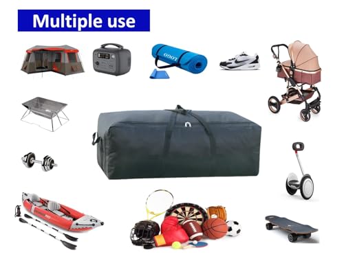 • 【Multiple use】our xl duffle bag that can be used either travel, house moving or for storing items. it's lagre capacity and sturdy property make it flawless for carry or storage light and large contents as sports gears, photo equipment, fishing equipment, rock-climbing equipment, hunting equipment, yard equipment, portable cots, tent, inflatable kayak, air mattress, sleeping bags ,even huge paddle board and so on, but not suggest store heavy tools or rough, sharp objects in this bag