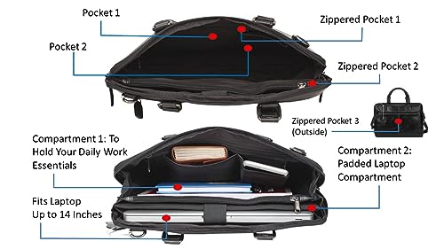 Fabric type: LeatherOrigin: ImportedGENUINE LEATHER: Expertly crafted from genuine cowhide leather by seasoned artisans, the Pitaara laptop bag exudes unmatched quality and durability. Whether you're in need of a laptop bag for women or a slim leather briefcase, the Pitaara laptop messenger bag seamlessly adapts to various styles and preferences.ELEGANT DESIGN: Designed for convenience and extra room, this designer computer bag features a polyester lining. Our black laptop bag can hold 14 laptops and includes two large compartments, two small pockets, and two big zippered pockets inside. The other big compartment and the two zippered pockets are superb for daily essentials like notebooks, makeup, planners, cards etc. The two small pockets inside are ideal for holding your cellphone and a short notebook or wallet.LARGE CAPACITY: Our genuine leather womenβs laptop bag meets all your daily work and life needs.This womens briefcase has1 Zippered Pocket on the outside, 2 Big Compartments (Padded Laptop Compartment fits laptops upto 14 inches), 2 Big Zippered pockets and 2 Small Pockets on the inside. A perfect crossbody messenger bag for women!VERSATILE USAGE: Engineered with multi-functionality in mind, this women's leather briefcase bag can be your laptop computer bag, office satchel or handbag, business travel bag, school shoulder bag, university laptop bag, business work bag, computer shoulder bag, teacher's bag, office bag. No matter what you're up to, our full grain leather briefcase is a multifunction leather laptop bag, hence, it is great for work, business trips, meetings, college, shopping, or just using it every day.LAPTOP BRIEFCASE WITH ADJUSTABLE AND REMOVABLE SHOULDER STRAP: This real leather messenger bag for women also comes with a detachable and an adjustable shoulder strap, allowing it to be worn comfortably as either a crossbody briefcase bag or over-the-shoulder bag.PERFECT GIFT: Our genuine leather messenger bag is an ideal gift for Bridesmaids, Birthdays, Anniversaries, Mother's Day, Christmas and other Special Occasions. Perfect for everyday use. superior materials and excellent craftsmanship ensure long-lasting durability.