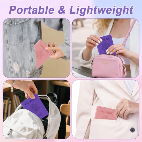 Passport Holder for Travel, 2 PCS Passport Holder, Travel Passport Holders Must Haves for Women Men, Pink and Purple Passport Cover Passport Wallet Case Holders for Travel Cruise Ship Essentials Gifts