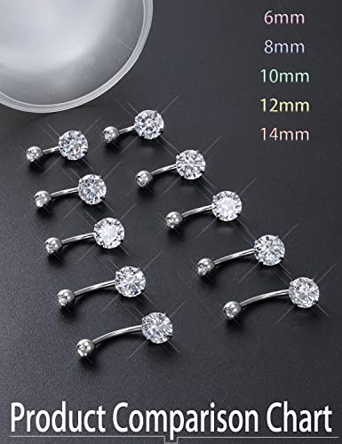 Long Belly Button Ring 6mm 8mm 10mm 12mm 14mm Surgical Stainless Steel Round Cubic Zirconia Navel Barbell Long Bar Belly Button Piercing Jewelry Silver, black, rose gold belly ring 7