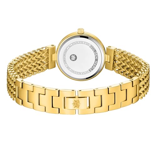 - Elegant Design: This women's wrist watch boasts a stunning gold-tone stainless steel case and bracelet with an intricate woven pattern for a luxurious look.