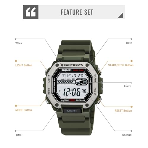 Item width: 47 millimetersClasp type: BuckleItem type name: Watch50 M Water Resistant Powerhouse:Built for men who dive,surf,or shower,luminous digits & hands glow green at night for instant time checks.All in One Fitness Wingman:Ladies can toggle stopwatch,wake-up alarm,weekday display with one thumb while jogging records every split.Versatile for Any Occasion: Whether for daily wear, outdoor sports, or business meetings, this digital watch waterproof complements your attire perfectly.Boardroom to Backpack Style:Quick release steel & silicone straps swap in 3 seconds,oversized 47 mm dial adds bold flair to suits or hoodies.Year Long Battery Confidence:CR2025 cell keeps ticking for 365 days,low battery icon warns you long before the next adventure. superb for everyday use. superior materials and excellent craftsmanship ensure long-lasting durability.
