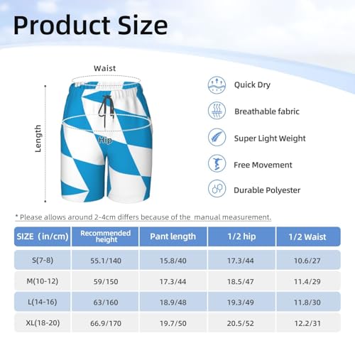 More information about Bavarian Flag Youth Beach Pants, silky and Breathable, with Drawstring Waist, Suitable for Sports and Leisure.