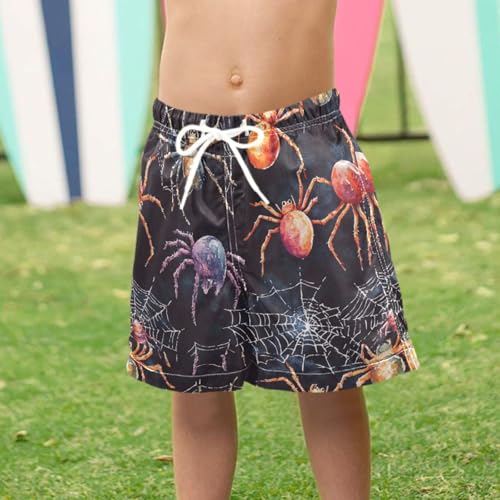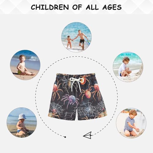 Pigsaly Boys' Swim Board Shorts White Spider Webs Colorful Spiders Boy's Swim Trunks Kids Swimwear 5T