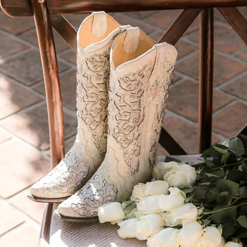 Corral Women's 13-inch White/Green Glitter Inlay & Crystals Pull-On Cowboy Boots - Sizes 5-12 B 4