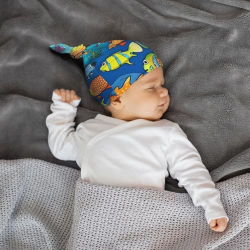 • No Tag, Seamless Comfort: Designed with your baby's comfort in mind, our Turtle and Fish Print baby headwear hat is tag-less with plush internal stitching. No scratchy labels or rough bumps, ensuring a smooth to peaceful wear.