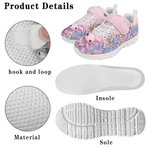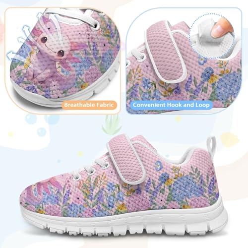 Kids Sneakers for Boys Girls Running Tennis Shoes Lightweight Breathable Sport Athletic White Sole Cute Axolot Floral Pattern 5