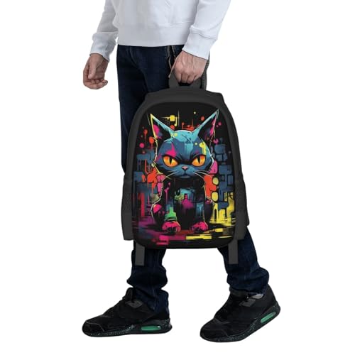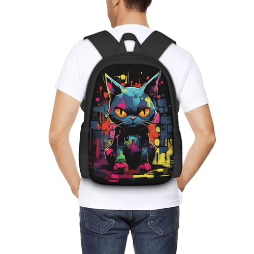Comfort Fit Unisex 17 Inch Backpack Grunge Cat Graffiti Padded Straps for Long - Haul Carrying Work & Travel Use 1