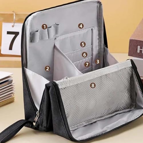 【Stand-Up Design for Easy Access】No more digging! This upright bag stands on its own so you can see everything at a glance. Great for countertops—no tipping, no mess【Spacious & Organized】Fits all your essentials with 8 compartments: large main pocket (with adjustable divider), brush slots, elastic lipstick holders, a triangle corner for small tools, and a back pocket for sheet masks or a mirror【Everything in Its Place】Clear layout keeps your makeup, brushes, skincare, and tools neatly separated—even when you’re on the move【Waterproof & resilient】Made of thick waterproof Oxford cloth to keep your items safe from splashes and spills—perfect for busy mornings at the vanity【Versatile Multi-Use】Beyond cosmetics, it doubles as a toiletry bag, stationery organizer, or tech pouch for accessories like chargers and headphones. One bag, many uses—whether at home, at work, or on the go Perfect for everyday use. superior materials and excellent craftsmanship ensure long-lasting durability.
