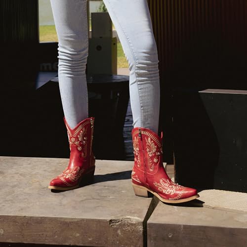 Cowboy Boots for Women, Cowgirl Boots with Sparkly Embroidered Rhinestones, Short Western Ankle Boots for Women with Side Zipper Pull On 5