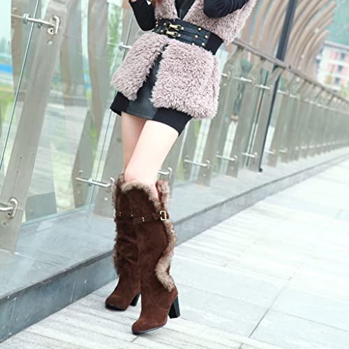 Women's Winter cozy Furry Knee High Snow Boots Tall Pull On High Heel Fur Lined Wide Calf Snow Boot