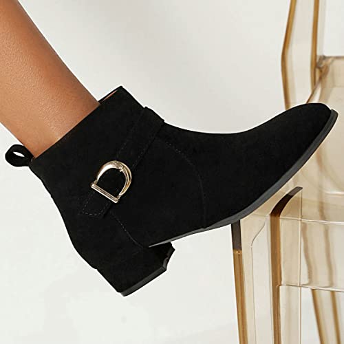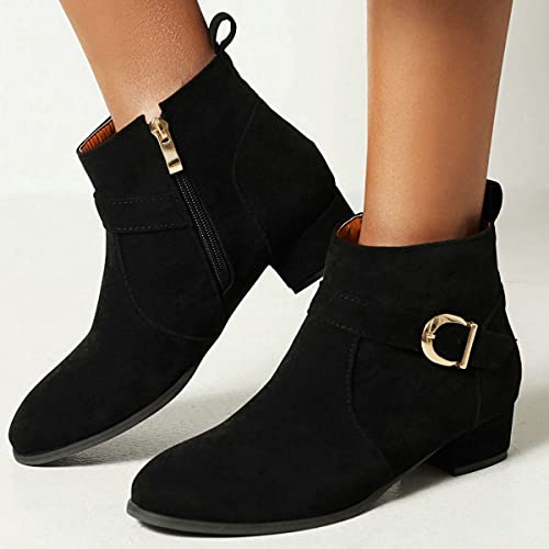 Why Choose ClassicSter Womens Faux Suede Booties Round Toe Chunky Low Heel Zip Up Ankle Boots with Buckle?