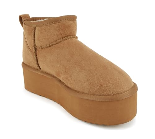 popular ! Soda “Benji” ~ Women Round Toe Flatform Sherpa-lined Ankle Bootie