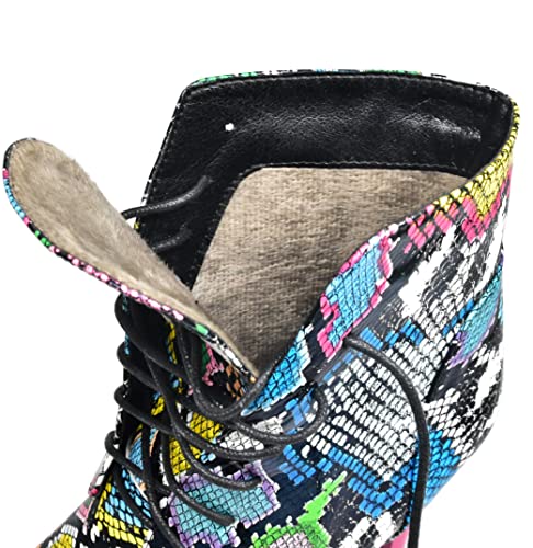 • Sexy stiletto, pointy toe, trendy colorful snakeskin printing high heel ankle boots.