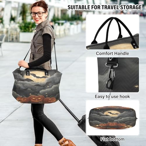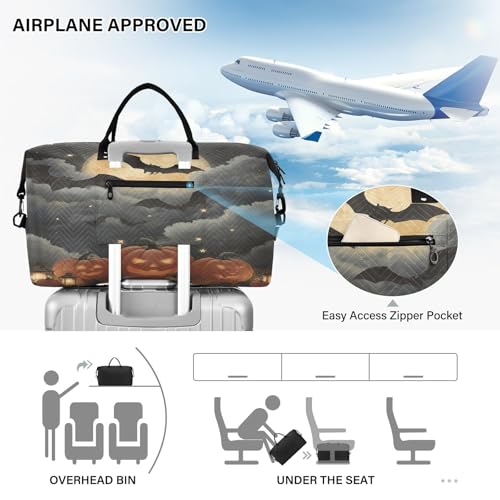 popular ! Bat Pumpkin Halloween Lanterns Travel Duffel Bag for Men Women with Makeup Bag Weekend Overnight Carry On Bags for Travel Yoga Gym