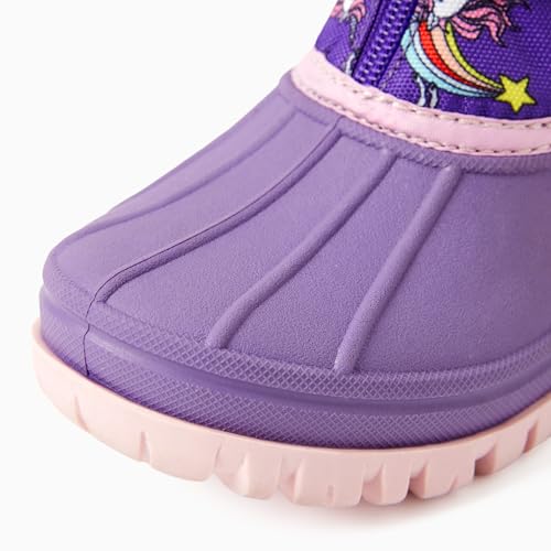 • 【traditional Color Matching】 The snow boots have three color. Girl's purple with unicorn graffiti hand drawn pattern, children's rose red and dark blue patchwork contrasting design, classic black solid color for different toddler/little kid/big kid