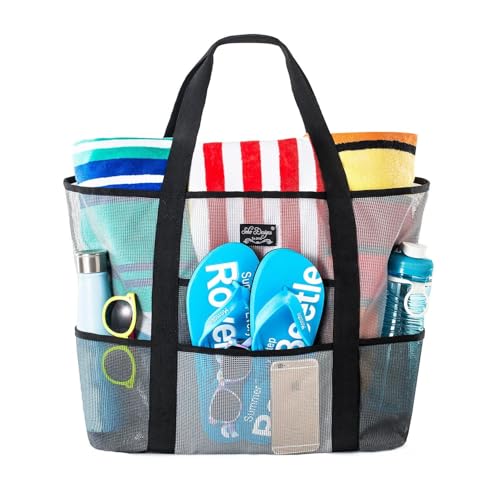 • DURABLE supreme MESH – withstands worn and tear from sand, sea, children etc, REUSABLE & FASHIONABLE - with long relaxing straps. Even your husband won’t mind carrying this bag..