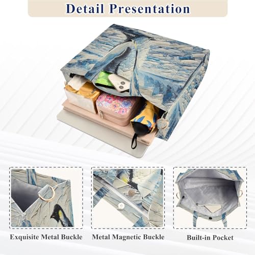 • Applicable Size: This canvas tote bag available in two.sizes,S:26*10.5*23CM(10.2*4*9inch). M:35*12.5*31CM(13.7*4.9*5.7inch) Choose the flawless size for your needs.The large tote bag have large main compartment features a magnetic buckle closure to secure your belongings, making it suitable for carrying larger items such as umbrellas and thermos cups.