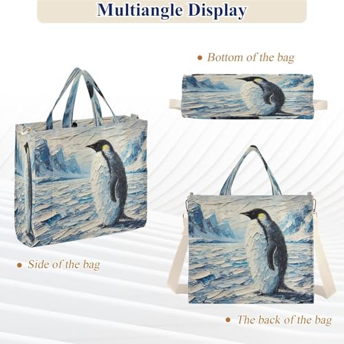 Penguin Tote Bag for Women Handbags Everyday Bag Corduroy Canvas Tote Bag for Office Travel College Pool S 5