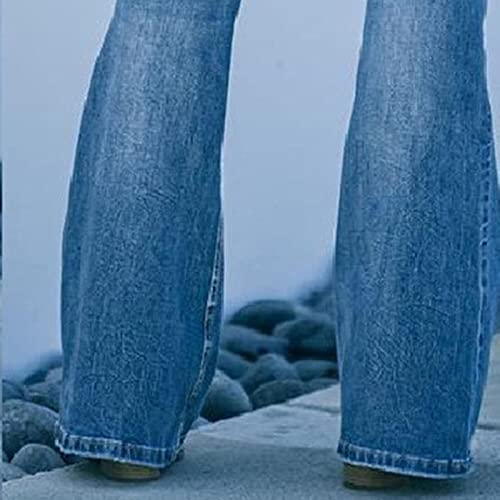 More information about Women's Mid Rise Button Flare Jeans Bell Bottom Raw Hem Denim Pants vintage Boot Cut Wide Leg Jean Trousers (Blue,XX-Large)
